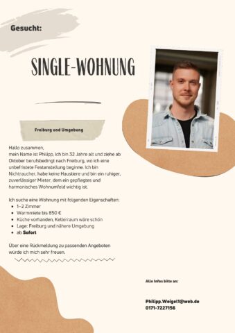 mein Name ist Philipp, ich bin 32 Jahre alt und ziehe ab Oktober berufsbedingt nach Freiburg.