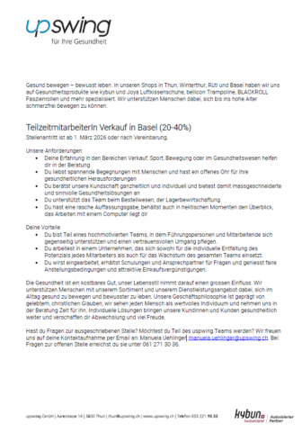 Für unser motiviertes Upswing Basel Team suchen wir per März 2026 ein weiteres Teammitglied.
